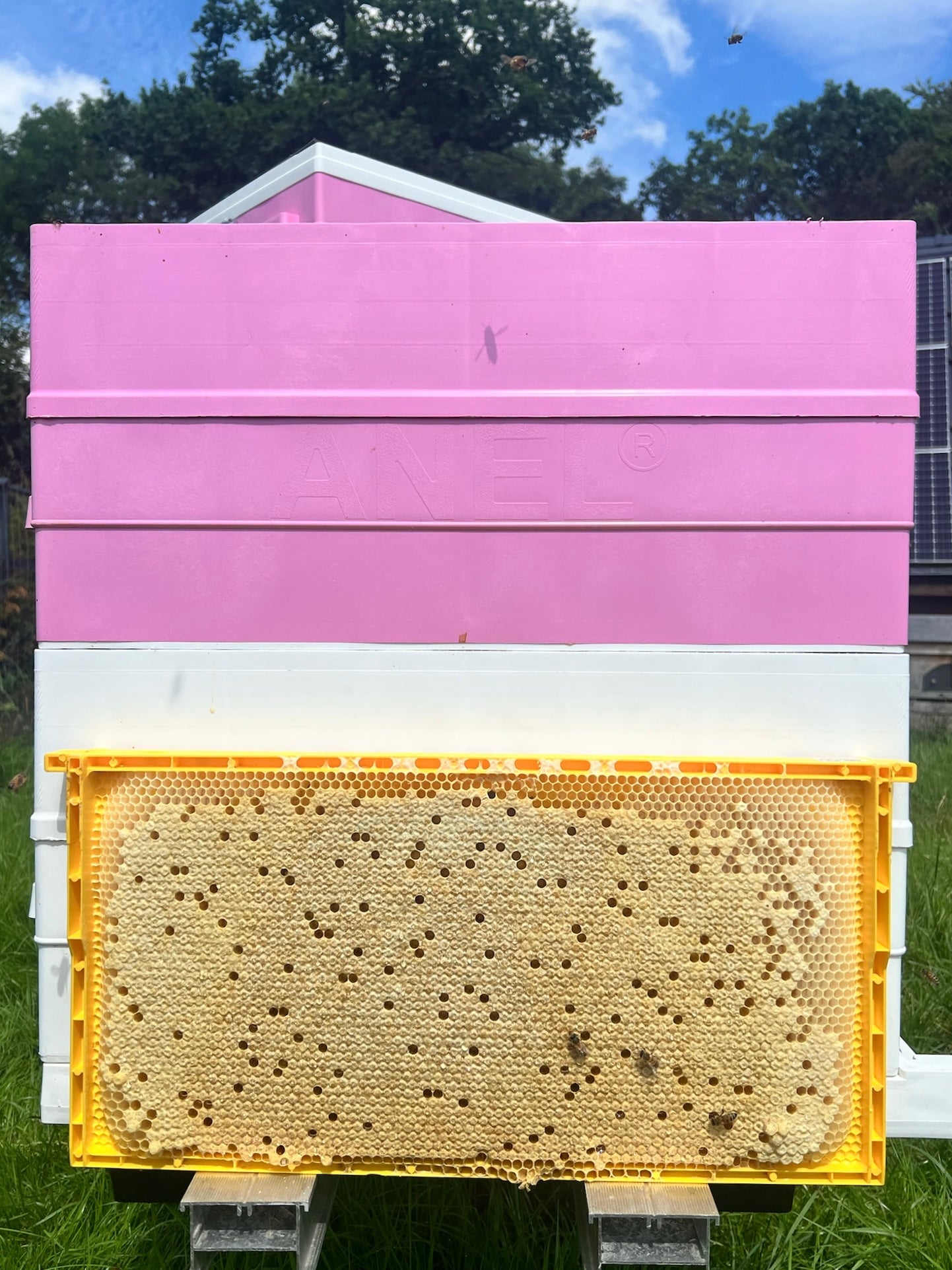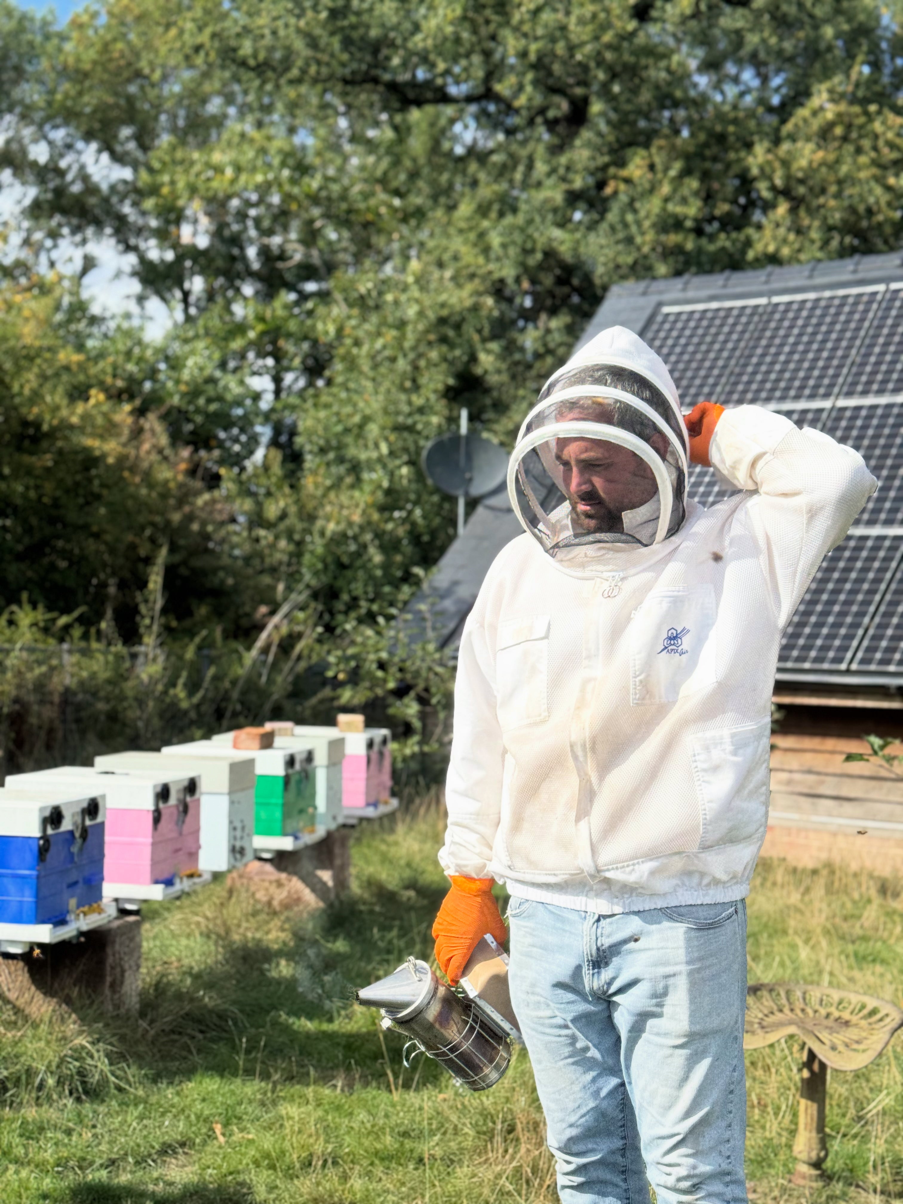 Before the hives arrived, he was already growing fruit and vegetables at home, keeping chickens for eggs, and making cider in small batches. Adding honey felt like a natural next step. At first it was simply about producing something delicious, but bees have a way of drawing you in. The more time he spent around the colonies, the more fascinated he became by how they work: the rhythm of the seasons, the shifting dynamics inside the hive, and the way the workers quietly run the show.