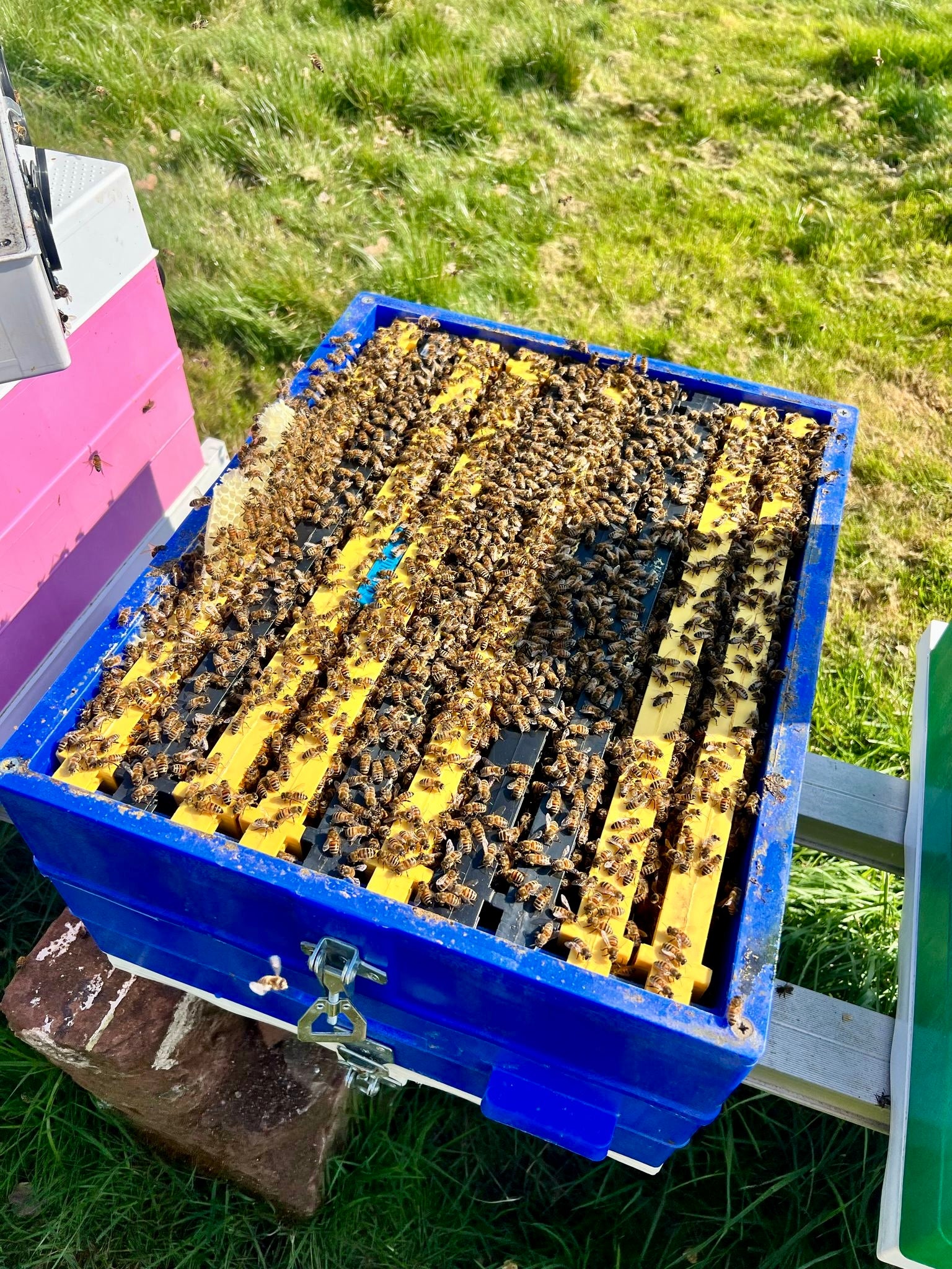 Our colonies are based on the Buckfast strain, originally bred for their calm nature, productivity, and ability to thrive in varied weather. They’re steady to handle, less defensive, and well-suited to the changing conditions across the UK.